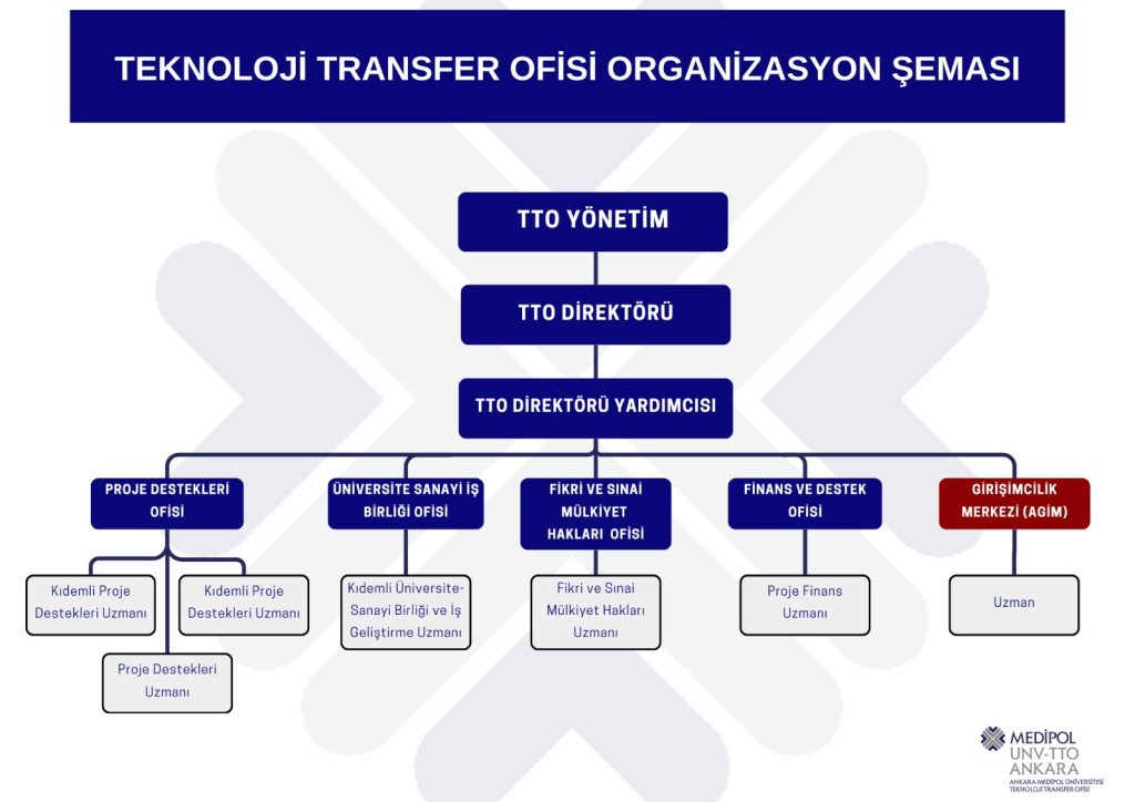 Teknoloji Transfer Ofisinin Organizasyon Şeması aşağıda yer almaktadır;